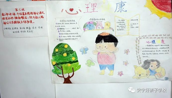 5月21日,根據(jù)分組,七個小組進行了手抄報比拼。同學們在心理老師的指導下,不僅在卡紙上畫出了自己心里最美的圖案,并給出了相應的釋義,而且在創(chuàng)作過程中,提高了學生自主參與能力與創(chuàng)新能力,也有效認識到了心理健康的重要性。