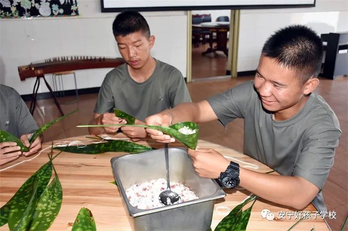 上午9時,在莊嚴的升旗儀式后,師生們開始熱火朝天地包起了粽子。