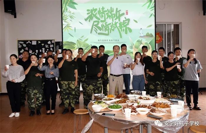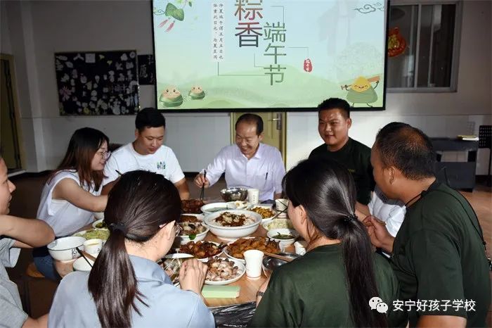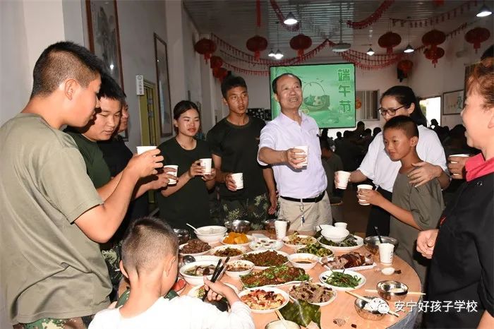 傍晚,一個個香氣撲鼻的“粽子”新鮮出爐了,一桌桌色香味俱全的美食便呈現(xiàn)在大家眼前。餐前,學校理事長袁戰(zhàn)穩(wěn)向全體師生致以節(jié)日的問候,希望大家都能品嘗時光的香甜,在往后的日子里平和安康。隨后,在袁理事長“開席”的一聲令下后,大家共同舉杯,互道“端午節(jié)安康”,晚宴正式開始了。孩子們迫不及待地吃著豐盛的晚餐,品嘗著自己的“作品”,笑容分外甜蜜。席間,袁理事長還親切地走到孩子們中間敬茶祝福。感受著袁理事長關切的話語、和藹的笑容,同學們心里暖暖的!鏡頭下,孩子們還紛紛向老師和遠方的父母送去節(jié)日的祝福,祝愿他們端午安康。整個場面洋溢著濃郁的節(jié)日氛圍。