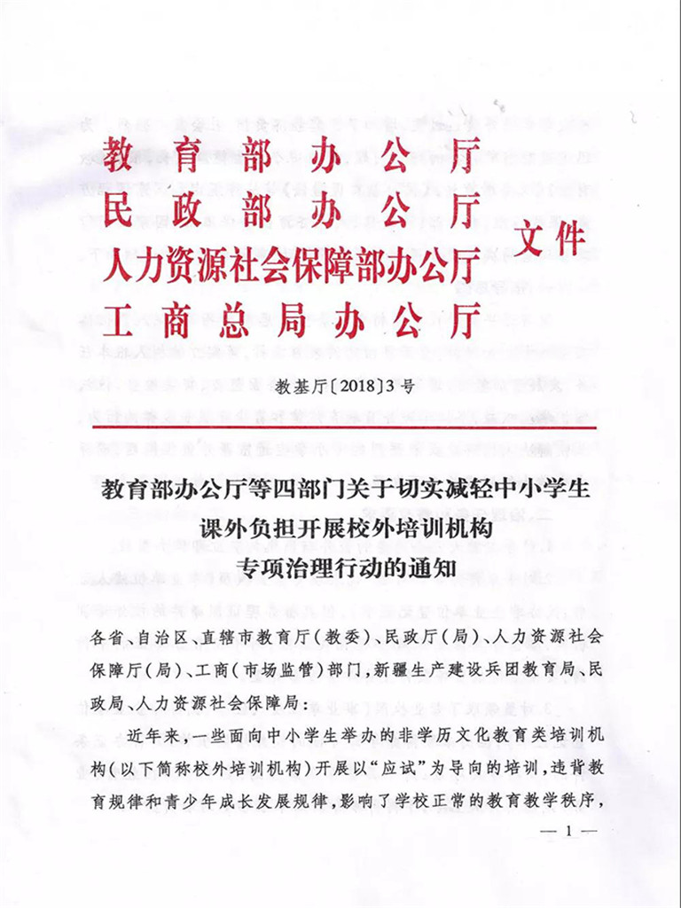 教育部四部委關(guān)于培訓(xùn)機構(gòu)聯(lián)合整治的意見