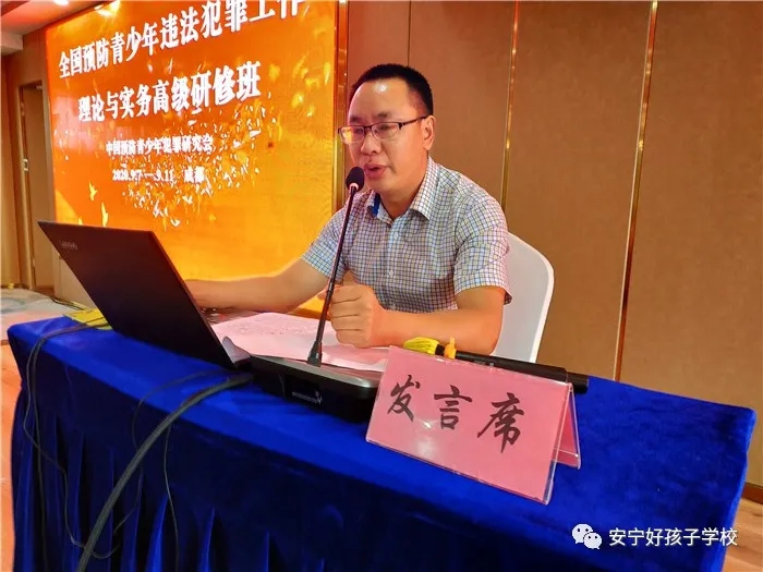 2020年9月7日—11日,中國(guó)預(yù)防青少年犯罪研究會(huì)在成都舉辦了第十一期“全國(guó)預(yù)防青少年違法犯罪工作理論與實(shí)務(wù)高級(jí)研修班”,我校執(zhí)行校長(zhǎng)尹斌在培訓(xùn)會(huì)上作辦學(xué)經(jīng)驗(yàn)交流,辦學(xué)成果得到了參會(huì)領(lǐng)導(dǎo)及學(xué)員們的高度認(rèn)可。