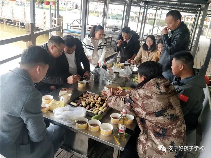玩得有些疲憊了,索性找個(gè)景色秀美的農(nóng)莊停留下來(lái),開(kāi)始了燒烤狂歡。每個(gè)人都大展身手,各顯神通。撿、洗、切、煮、烤等工作,大家默契配合、互相照顧。天氣寒冷,男老師在一舉一動(dòng)中更是體現(xiàn)了紳士風(fēng)度,格外照顧女同事,不但切、烤包攬,就連撿、洗都爭(zhēng)搶著做?臼炝耍腔ハ喟押贸缘耐鶎(duì)方碗里夾,一個(gè)勁地說(shuō)著“快吃,多吃點(diǎn),辛苦啦”,充分展示了“工作中我們是默契的隊(duì)友,生活里我們是溫暖的朋友”這一良好氛圍。吃飽喝足后,大家又開(kāi)始露天KTV縱情高歌,或者來(lái)個(gè)“廣場(chǎng)舞”,就地取材的老師們,把鍋碗瓢盆臨時(shí)當(dāng)成了樂(lè)器,給大家即興伴奏。現(xiàn)場(chǎng)精彩不斷,歡聲笑語(yǔ)不斷,同事們的情誼也隨著這笑聲逐漸升華。