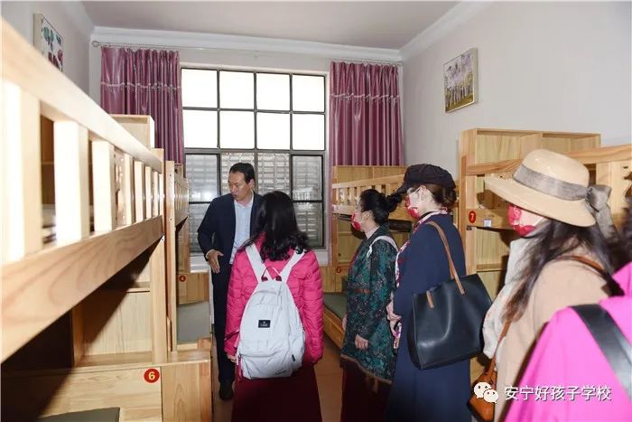 詹主委一行懷著對(duì)學(xué)校的關(guān)心、關(guān)切之情,首先親切地走進(jìn)了學(xué)校的辦公樓、教學(xué)樓、多媒體教室、心理輔導(dǎo)室、學(xué)生宿舍等進(jìn)行全面了解。隨后,在多功能室觀看了學(xué)校教學(xué)活動(dòng)短片,看到孩子們的華麗成長蛻變,大家深受感染,流下了感動(dòng)的熱淚。其間,魯校長就學(xué)校的辦學(xué)理念、發(fā)展歷程、辦學(xué)特色、安全管理、辦學(xué)戰(zhàn)略定位、發(fā)展目標(biāo)及辦學(xué)成績等多項(xiàng)內(nèi)容逐一向“家人們”作了匯報(bào)。