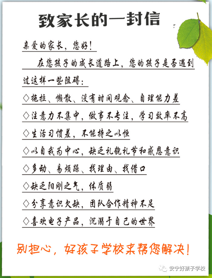 昆明安寧好孩子學(xué)校2010年經(jīng)云南省教育廳備案,安寧市教育局依法批準(zhǔn)辦學(xué),十余年來,得到了各級(jí)黨委政府及社會(huì)各界人士的關(guān)心支持,成功培訓(xùn)了4000多名孩子,深受家長(zhǎng)的信賴。