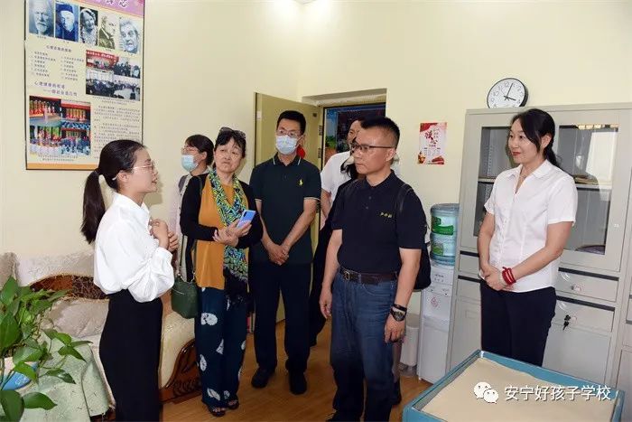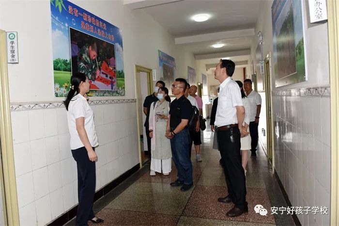 許秘書長一行懷著對學校的關心、關切之情,在校領導的陪同下,首先深入學校的辦公樓、教學樓、宿舍樓、食堂、心理輔導室等地進行參觀。隨后在多媒體教室觀看了學校教學活動短片,更直觀、全面地對學校進行了解。其間,李新紅副校長向許秘書長一行介紹了學校的辦學情況,訪問組一行連連稱贊學校是在做有情懷的教育,為社會傳播了很多正能量。隨后,領導們還親切走到孩子們身邊合影留念。