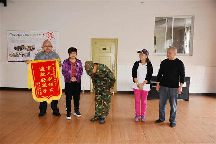 為表達謝意,朱思豪家長將一面繡著“育人新模式,造就好孩子”字樣的錦旗贈給學校,以此感謝學校對孩子的辛勤培育,我校教務主任張汝云代表學校接下了這面沉甸甸的錦旗。