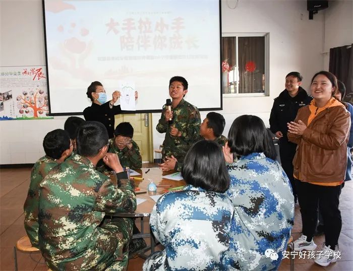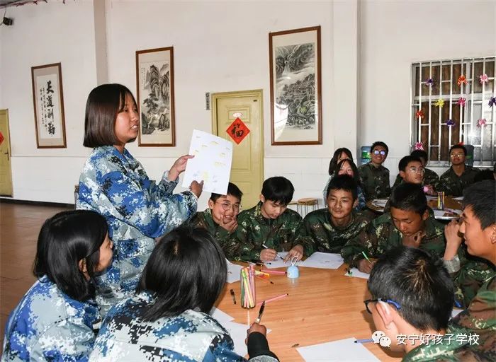隨后,省未管所的兩名心理咨詢師組織同學(xué)們開展了一次集體參與的心理團(tuán)輔活動(dòng);顒(dòng)開始前,老師通過破冰小游戲《拍拍操》,引導(dǎo)孩子們打開心扉積極融入進(jìn)來(lái)。之后,同學(xué)們?cè)诶蠋煹闹笇?dǎo)下分組圍坐,按照老師的要求完成屬于自己的心理自畫像,并爭(zhēng)先恐后地舉手發(fā)言,與大家分享自己的作品,現(xiàn)場(chǎng)掌聲不斷。最后,老師總結(jié)道:“其實(shí)每一幅圖畫中都有一個(gè)故事或期待,通過心理自畫能讓同學(xué)們更加深入地了解自己,對(duì)認(rèn)識(shí)自我有一個(gè)新的探索。”輕松、愉快的活動(dòng)氛圍,促使同學(xué)們主動(dòng)敞開心扉直面自己,接納他人,客觀全面的認(rèn)識(shí)自我。
