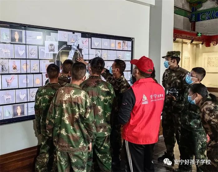 走進博物館,映入眼簾的是欞扇門窗、雕梁畫柱、四重飛檐,這樣宏偉的氣勢仿佛帶領同學們穿越了時空隧道,盡情徜徉在安寧的歷史文化長河中。