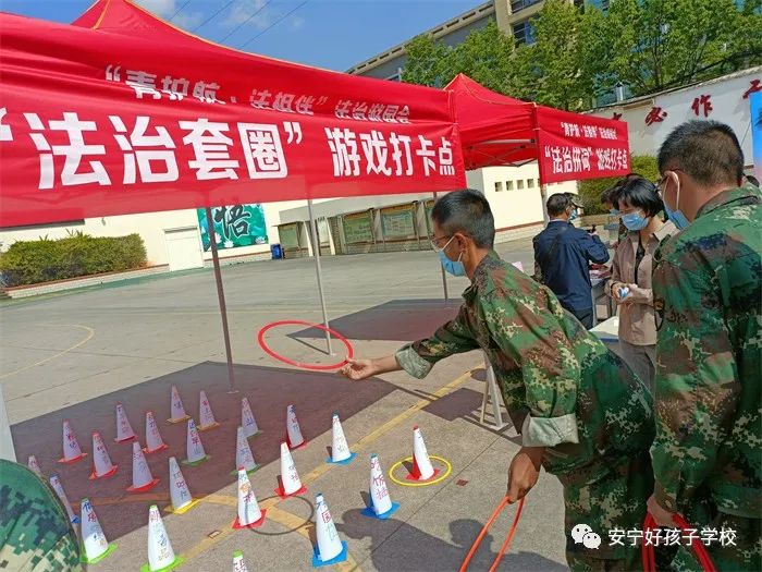 之后開展了以“未保知多少”、“法治套圈”、“法治拼詞”、“法平如水”等多項(xiàng)趣味游園活動。同學(xué)們熱情高漲,積極參與其中,每個(gè)法治游戲打卡點(diǎn)都熱鬧非凡。“法平如水”游戲中,同學(xué)們很快掌握了乒乓球運(yùn)送技巧,快速過關(guān);“法治拼詞”也激起了同學(xué)們的挑戰(zhàn)欲,從眾多的字塊中,他們眼疾手快地把一個(gè)個(gè)法制成語拼湊成功;“未保知多少”也難不倒同學(xué)們,大家運(yùn)用日常法律課堂所學(xué),快速準(zhǔn)確作答;是時(shí)候表演真正的技術(shù)了,“法治套圈”更是激起了大家的勝負(fù)欲,當(dāng)老師發(fā)出套 “違法行為”或“不良行為”的口令時(shí),同學(xué)們就迫不及待地瞄準(zhǔn)、套中,一氣呵成。