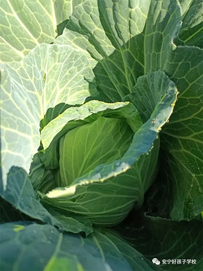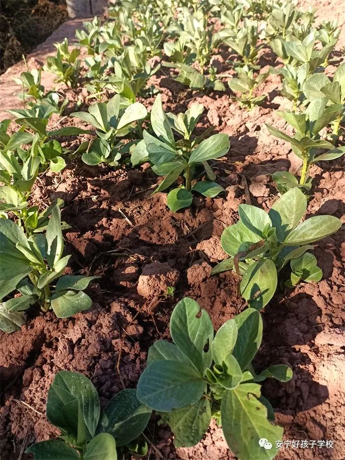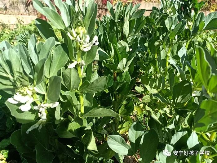 孩子們干活累了,就饒有興致地去觀察之前的同學(xué)所取得的階段性成果;蚴强纯凑_花的蠶豆,或是瞧瞧倔強(qiáng)生長的豌豆和蘿卜,或是聞聞綠油油的青菜,或是摸摸即將可以享用的包菜或苤藍(lán)...... 實(shí)物可比圖片生動(dòng)有趣多了,它們的生長形態(tài)如此不同,成長周期也不一樣,卻又都生長在同一片土地上,大自然的無限魅力,讓孩子們的眼睛更加敏銳,思維也活躍起來。