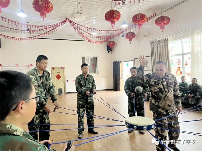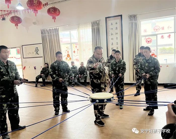 聽完,同學(xué)們不以為然,都認(rèn)為很簡(jiǎn)單,可沒想到一拉動(dòng)繩子球就以掩耳不及迅雷之勢(shì)落地。幾次失敗后,有的同學(xué)開始著急,老師提醒同學(xué)們不要急躁,繩子要拉直,鼓面要保持水平,隊(duì)員要齊心協(xié)力,眼往一處看,勁往一處使,心往一處想。經(jīng)過練習(xí)調(diào)整,隊(duì)員們從生疏慢慢熟練起來,配合默契度也越來越高。他們拉緊手中的繩索,面部神情也由之前的游離漠視聚焦為專注認(rèn)真,急躁抱怨也變?yōu)槠胶蛯捜,平衡與控制掌握得越來越好,球落鼓面的敲擊聲次數(shù)越來越多,上下抖動(dòng)之間,小球舞動(dòng)如精靈。尤其球在一次次即將掉落卻又被戲劇性地“救”回來時(shí),那樣緊張興奮的心情無(wú)以言表。小組同心的力量,正悄悄熔煉著這個(gè)團(tuán)隊(duì),大家樂在其中。