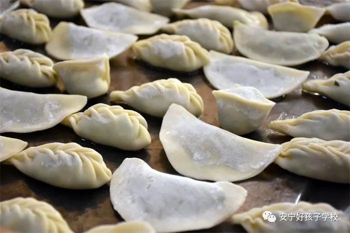 下午三點(diǎn)半,活動(dòng)在學(xué)校餐廳舉行。當(dāng)廚師把餃子餡調(diào)好后,師生就其樂(lè)融融地包起了餃子。老師們一會(huì)兒做“督導(dǎo)員”,一會(huì)兒捋起袖子加入到包餃子的強(qiáng)大陣營(yíng)中。一個(gè)小時(shí)后,一盤盤別出心裁、花樣繁多、千姿百態(tài)的餃子便相繼誕生了。有月牙餃、元寶餃、玫瑰餃,有敦實(shí)厚重的、有別致精巧的、還有四不像的。不論形狀如何,但祝福卻是一致的,都希望大家新年“餃”好運(yùn)!