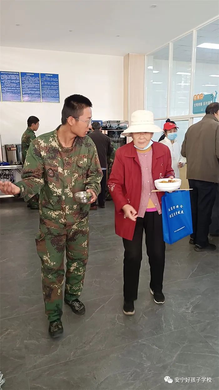 到達目的地后,同學們就立即行動起來。有的協助社區(qū)工作人員布置活動現場,有的幫助爺爺奶奶領牌登記,有的維持現場秩序,有的幫忙打飯、倒水......老人被孩子們的真誠熱情深深打動,和孩子們親熱地閑聊起來。孩子們得體的言談和暖心的行動,得到老人們的交口稱贊。養(yǎng)老服務中心不時傳來陣陣歡笑聲,呈現出一派其樂融融的景象。