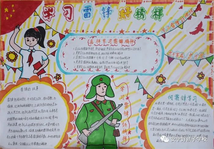 下午,孩子們踴躍參與到“學(xué)雷鋒”手抄報(bào)活動(dòng)中。在制作過程中,孩子們通過描繪雷鋒肖像、介紹雷鋒事跡、摘錄《雷鋒日記》等多角度重溫了雷鋒生平,有力地宣揚(yáng)了雷鋒精神。并結(jié)合實(shí)際,展現(xiàn)了身邊的“雷鋒”。