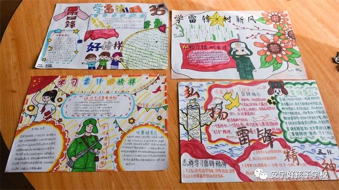 一張張手抄報(bào)主題鮮明,內(nèi)容豐富多彩,板式新穎多樣,字跡工整清晰,充分展示了孩子們對(duì)“雷鋒精神”的所思所想、所感所悟。