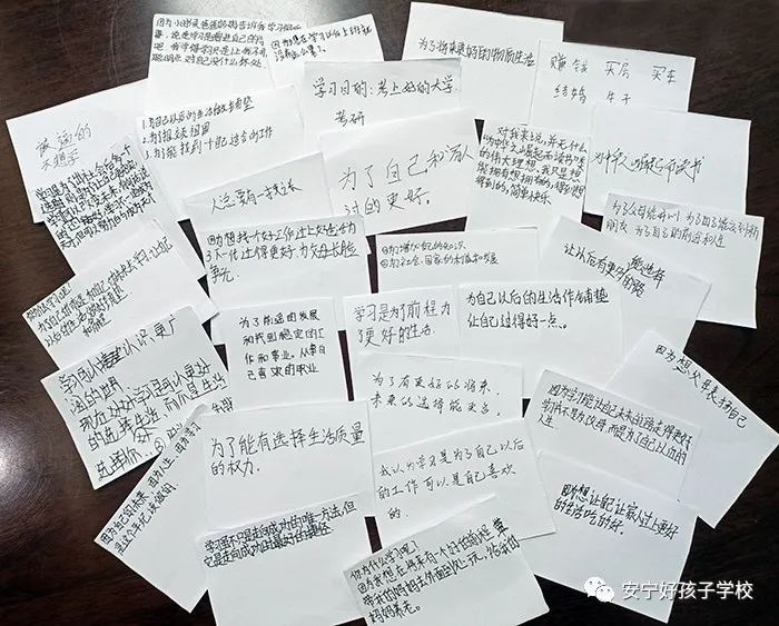 從課后收到的反饋中我們不難發(fā)現(xiàn),孩子們能從多角度、多方位思考自己不喜歡學(xué)習(xí)的原因,我們也從中看到了孩子們對(duì)父母正確看待自己的期待,以及對(duì)未來的美好憧憬?傊⒆訉W(xué)業(yè)困難來自很多方面,我們既不能武斷地認(rèn)為全是孩子的問題,也不能以學(xué)業(yè)成績作為評(píng)價(jià)孩子是否優(yōu)秀的唯一標(biāo)準(zhǔn),而應(yīng)辯證看待孩子的學(xué)習(xí)表現(xiàn),多欣賞孩子的閃光點(diǎn),多給予孩子肯定,強(qiáng)化孩子的學(xué)業(yè)信心,這樣孩子在學(xué)業(yè)上遇到問題時(shí)才更不容易出現(xiàn)回避和抗拒心理。