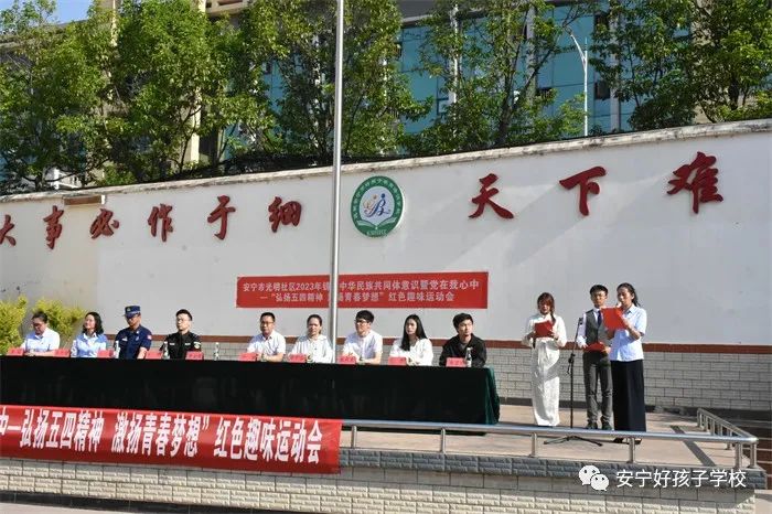 青春逢盛世,奮斗正當(dāng)時。為深入學(xué)習(xí)貫徹黨的二十大精神,激勵廣大青年傳承和發(fā)揚“五四”精神,進一步增強青年榮譽感和使命感, 2023年4月28日,安寧市光明社區(qū)團支部與我校聯(lián)合開展“黨在我心中——弘揚五四精神 激揚青春夢想” 紀念“五四”運動 104 周年紅色趣味運動會。