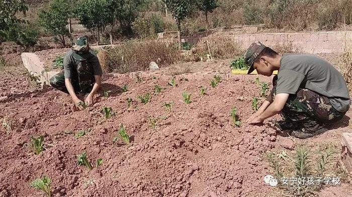 理論必須與實(shí)踐相結(jié)合,在老師的示范、指導(dǎo)下,同學(xué)們熱火朝天地和老師一起翻土、栽種、施肥、澆水……經(jīng)過一個(gè)上午的辛苦勞作,秧苗終于有了自己的新“家”,它們排著隊(duì),迎風(fēng)挺立著。同學(xué)們額頭上閃爍著汗珠,鞋子上、雙手上沾滿了塵土,可發(fā)自內(nèi)心的開心與幸福卻在臉上展露無疑。