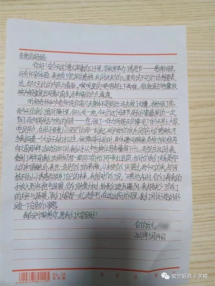 晚上,孩子們坐在多功能室,在信紙上盡情表達對母親的愛。很多孩子表示,平時因為距離太近、關(guān)系密切,又是至親至愛,所以許多話不好意思說出口,但在今天,卻想大聲說給媽媽聽: