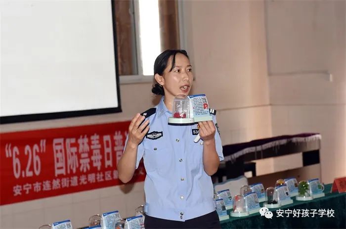 活動現(xiàn)場,有多年禁毒工作經(jīng)驗的戒毒所宣講員蔡莉菊警官,結(jié)合青少年學(xué)生好奇心強、辨別能力弱、抵制毒品侵害能力差等特點,用通俗易懂的語言,通過圖文、案例、視頻,向同學(xué)們詳細講解了毒品的定義、種類、特點、檢測、危害及預(yù)防等科普知識。