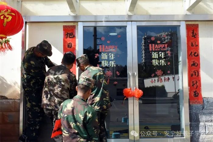 鑼鼓聲聲辭舊歲,張燈結(jié)彩迎新年。2024年2月6日至8日,為迎接龍年春節(jié)的到來(lái),我校停課開(kāi)始籌備新年的各項(xiàng)準(zhǔn)備工作。師生們?cè)趯?duì)校園全面大掃除后,就著手布置校園,大家既有分工又有合作,有的掛燈籠;有的貼窗花;有的貼春聯(lián);有的掛彩燈。經(jīng)過(guò)三天的忙碌,校園內(nèi)張燈結(jié)彩,到處洋溢著濃郁的節(jié)日喜慶氛圍!大家都在以一顆翹首以盼的心等待龍年新春的到來(lái)......