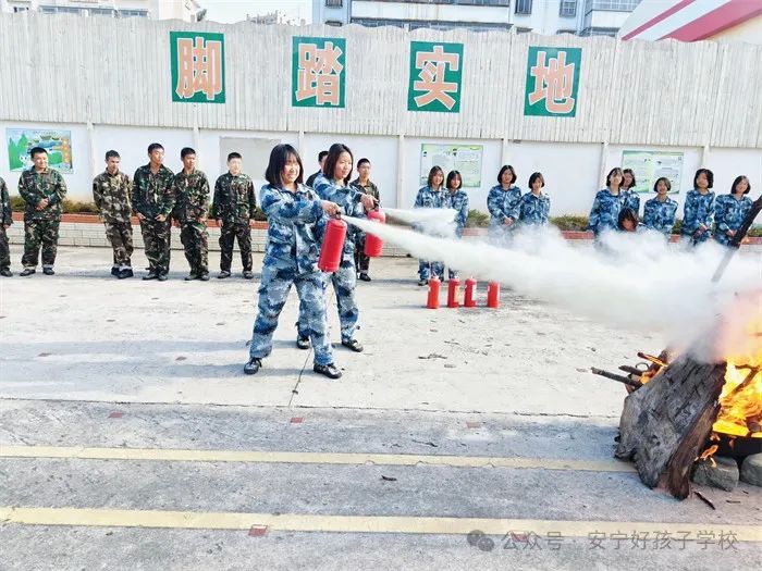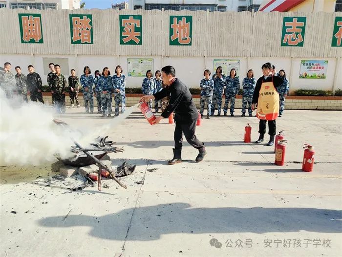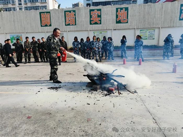 隨后,進(jìn)行了撲救演練。操場(chǎng)上的木材點(diǎn)燃后,火苗迅速變成了熊熊大火,張老師為師生們現(xiàn)場(chǎng)演示滅火設(shè)備(滅火器、高壓水槍)的使用方法,并一一指導(dǎo)大家親自操作。演練結(jié)束,張老師對(duì)本次活動(dòng)進(jìn)行了全面的點(diǎn)評(píng)和總結(jié),進(jìn)一步強(qiáng)調(diào)了安全逃生和火災(zāi)撲救中應(yīng)注意的問題。