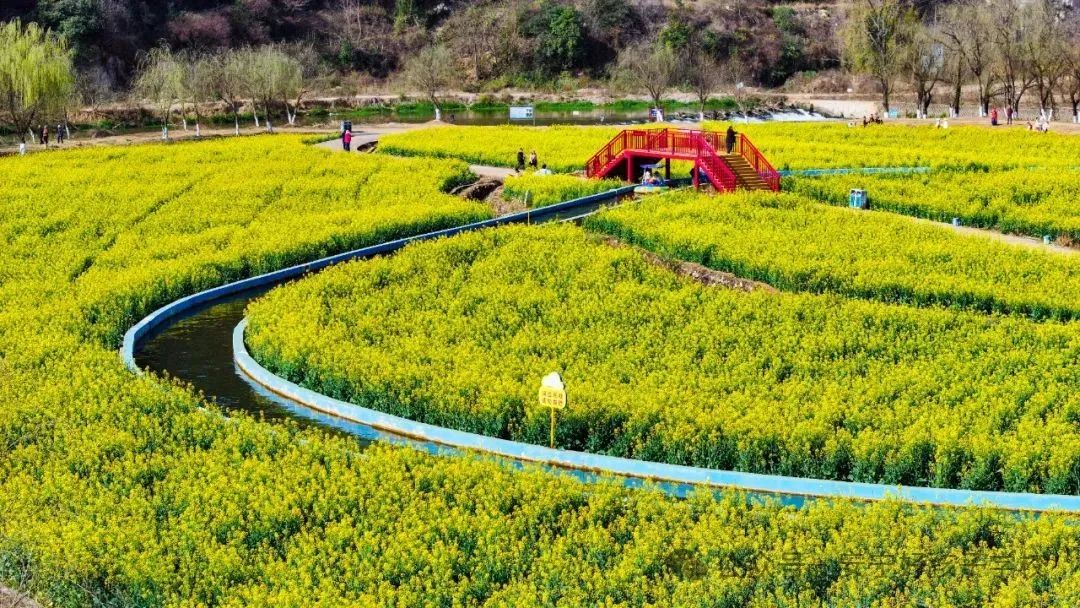 “油菜花開春意濃,滿目金黃惹人醉!毖巯,正是油菜花盛花期,一朵朵、一簇簇的油菜花,競相怒放,金黃色的花海猶如地毯般覆蓋著田野,美如大自然的油畫,煞是惹人喜愛!讓人不禁想去尋芳踏青、賞花觀景。花海金浪涌動,花香襲人,沁人心脾。伴著泥土的芬芳,徜徉在蜜蜂、蝴蝶載歌載舞的花田,如同在斑斕繽紛、流金溢彩的童話世界遨游。大家情不自禁閉上眼細數(shù)春天的腳步,爭先恐后在金黃鋪就的美景里,搶著上鏡,和春天撞個滿懷。放眼望去,花海與藍天白云、遠山田野、村莊河流相映成趣,勾勒出一幅田園春景圖。