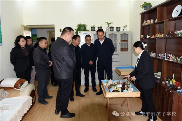 李書(shū)記一行懷著對(duì)學(xué)校的關(guān)心、關(guān)切之情,親切地走進(jìn)學(xué)校的辦公樓、教學(xué)樓、心理輔導(dǎo)室、學(xué)生宿舍等進(jìn)行全面查看。在走訪心理輔導(dǎo)室時(shí),還耐心聽(tīng)取了我校心理輔導(dǎo)老師解讀學(xué)生沙盤(pán)案例,深入了解學(xué)校心理輔導(dǎo)工作的開(kāi)展情況。隨后,在多媒體教室觀看了學(xué)校教學(xué)活動(dòng)短片,更直觀、全面地了解了學(xué)校的辦學(xué)情況。