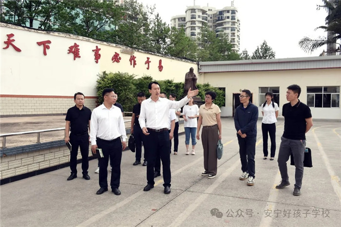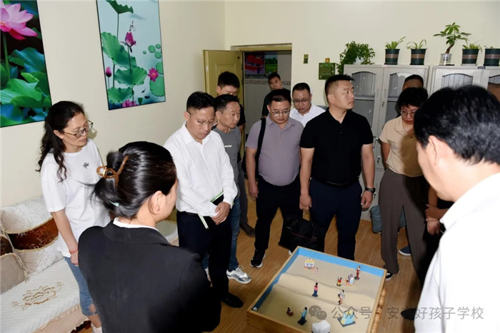 張書記一行首先對學(xué)校校園環(huán)境和硬件設(shè)施建設(shè)進行查看。在走訪心理輔導(dǎo)室時,細心聽取了我校心理輔導(dǎo)老師解讀學(xué)生沙盤案例,深入了解學(xué)校心理輔導(dǎo)工作的開展情況。隨后,在多媒體教室觀看了學(xué)校教學(xué)活動短片,全方位、深層次地了解了學(xué)校的辦學(xué)情況。其間,學(xué)校領(lǐng)導(dǎo)就學(xué)校的辦學(xué)理念、發(fā)展歷程、辦學(xué)特色、教學(xué)安全管理、辦學(xué)戰(zhàn)略定位及發(fā)展目標等多項內(nèi)容,逐一向張書記作了詳細匯報。聽后,張書記充分肯定了學(xué)校的辦學(xué)成績,夸贊學(xué)校辦學(xué)理念先進、有特色、有亮點、有成效,為未成年人健康成長和社會穩(wěn)定做出了重要貢獻。