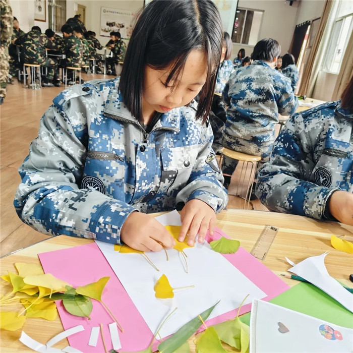 活動現場,同學們熱情高漲,他們或三兩一組,或獨自構思,充分發(fā)揮自己的想象力和創(chuàng)造力,用一雙雙巧手將一片片金黃的銀杏葉賦予了新的生命,變成了獨一無二的藝術品。