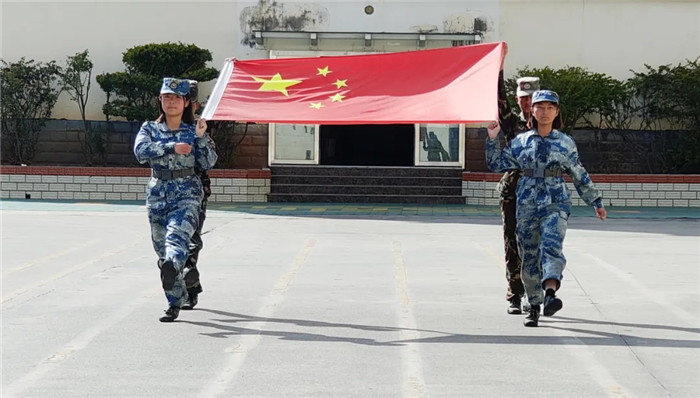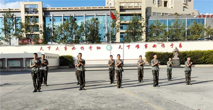 首先,進行的是基本隊列表演!吧韵ⅲ×⒄......”隨著指揮員的口令,同學們按規(guī)定完成了停止間轉法、齊正步行進與立定、敬禮與禮畢等一至八個訓練科目,每個動作都令行禁止,整齊的臂線、鏗鏘的步伐、嘹亮的口號,無不展現(xiàn)了同學們“站、立、行”的隊列規(guī)范和良好的精神風貌。