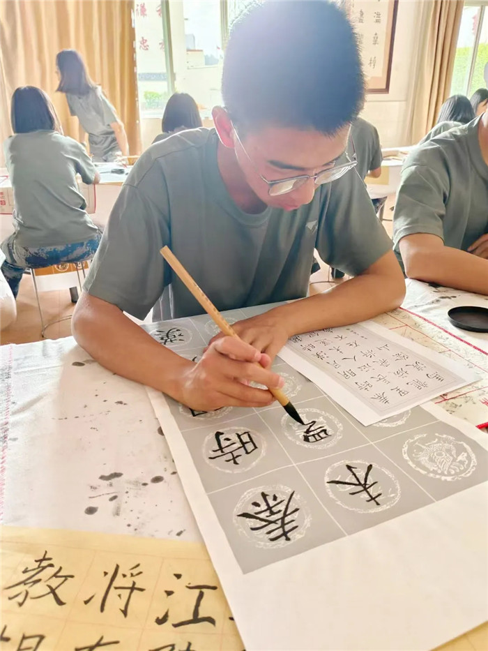 賽場(chǎng)上,同學(xué)們身姿挺拔,屏氣凝神,在墨香中揮毫潑墨。筆尖輕觸宣紙,一點(diǎn)一橫蒼勁有力,一撇一捺韻味十足,靈動(dòng)漢字躍然紙上。每一個(gè)精妙的字符背后,都凝聚著日常勤學(xué)苦練的汗水。對(duì)他們而言,這場(chǎng)比賽不僅是技藝的比拼,更是自我提升的寶貴契機(jī)。