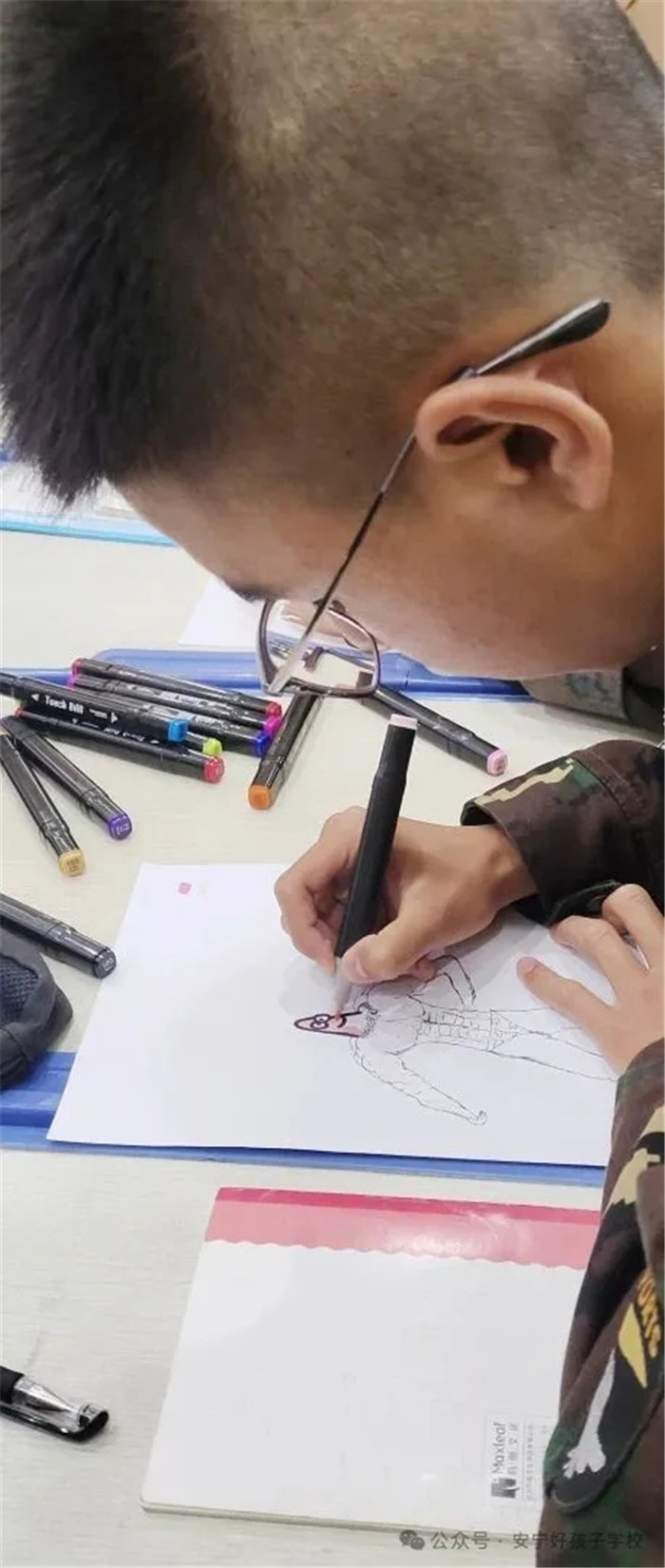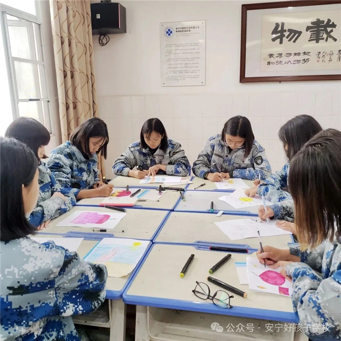 在“我手繪我心”創(chuàng)作環(huán)節(jié),藝術(shù)成為了孩子們表達(dá)內(nèi)心的獨(dú)特語(yǔ)言。有的同學(xué)用細(xì)膩筆觸勾勒寫(xiě)實(shí)自畫(huà)像,將外在形象與內(nèi)在性格巧妙融合;有的用繽紛色彩堆砌出奶油蛋糕,讓甜蜜的渴望在紙面流淌;有的繪制身著偶像球衣的自己,展現(xiàn)逐夢(mèng)路上的堅(jiān)定身影;更有的勇敢以灰調(diào)筆觸直面內(nèi)心的陰霾,讓迷茫與困惑在創(chuàng)作中得到溫柔安放。正如維特根斯坦所言:“語(yǔ)言的界限即世界的界限!碑(dāng)文字難以精準(zhǔn)描繪抽象、隱秘的情感時(shí),畫(huà)筆便成為了傾訴內(nèi)心的專(zhuān)屬語(yǔ)言。創(chuàng)作過(guò)程中,孩子們時(shí)而凝神思索,時(shí)而揮筆疾書(shū),那些原本模糊的“心的形狀”逐漸清晰可見(jiàn)。