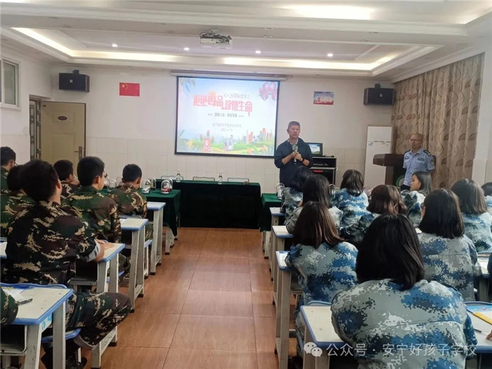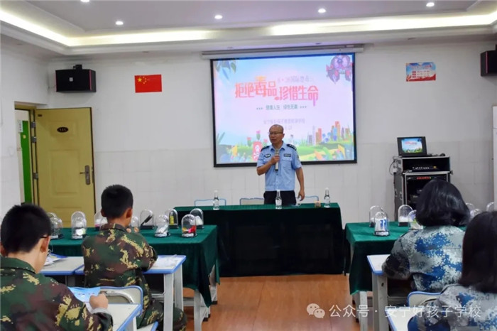 隨后,楊副主任和羅警官化身“安全守護者”,針對青少年好奇心旺盛、辨別能力薄弱、抗毒能力不足的心理特點,以一樁樁真實且觸目驚心的沉痛案例為切入點,用詳實的數(shù)據(jù)和鮮活的血淚故事,抽絲剝繭地揭示毒品的致命危害。從傳統(tǒng)毒品的成癮機理,到新型毒品“奶茶粉”“開心水”的偽裝陷阱;從個人健康的不可逆損害,到家庭破碎的慘痛代價,乃至社會和諧穩(wěn)定的嚴重破壞,講解層層遞進、直擊心靈。羅警官語重心長地告誡同學們:“毒品絕非新奇體驗,而是通向深淵的單程票,一時的獵奇沖動,可能換來終身的枷鎖。毒品危害如洪水猛獸,一旦沾染便萬劫不復! 他呼吁大家樹立正確的價值觀,培養(yǎng)積極健康的生活方式,以理性平和的心態(tài)面對成長挑戰(zhàn),強化自我保護意識,做到潔身自好、謹慎擇友,堅決恪守“不好奇、不靠近、不嘗試、不僥幸、不交毒友”的“五不”原則,從源頭上杜絕與毒品的接觸。