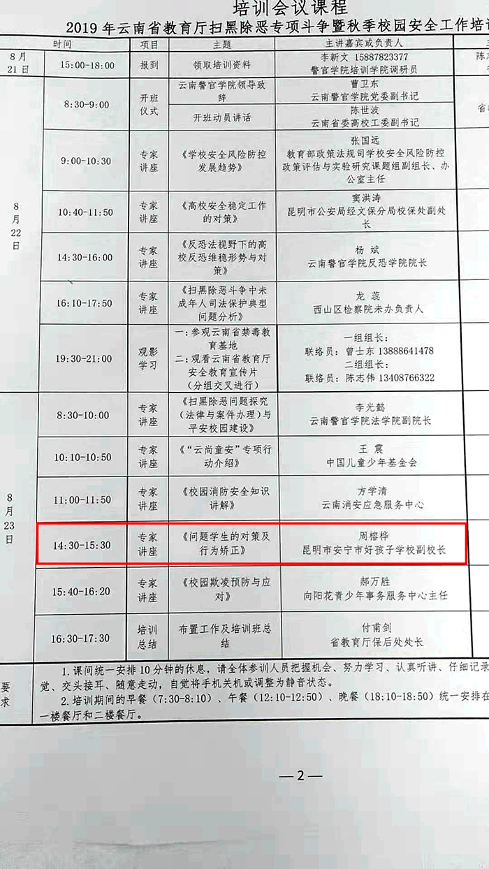 2019年8月22日—23日,云南省教育系統(tǒng)掃黑除惡專項(xiàng)斗爭暨秋季校園安全培訓(xùn)工作會議在云南警官學(xué)院隆重召開,我校受省教育廳的邀請參加了本次會議。