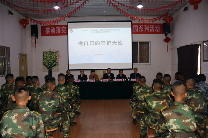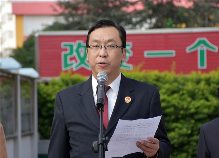 揭牌儀式上,魯校長介紹了出席活動的領(lǐng)導(dǎo)并致歡迎詞;隨后邀請了楊志剛檢察長與盧敏副局長為學(xué)校揭牌,全場響起熱烈的掌聲;隨后,楊檢察長發(fā)表了熱情洋溢的講話:“今天很高興!安寧市人民檢察院與好孩子學(xué)校7月簽訂的《未成年人陪護(hù)教育基地共建協(xié)議》,今天終于落地揭牌了。檢校合作,是深入貫徹習(xí)近平總書記新時代中國特色社會主義思想的重要舉措;是落實中央《關(guān)于加強(qiáng)專門學(xué)校和專門教育工作意見》的具體體現(xiàn);是促進(jìn)未成年權(quán)益保護(hù)和犯罪預(yù)防體系建設(shè)的有益嘗試;更是促進(jìn)未成年人健康成長的有力保障。專業(yè)的人做專業(yè)的事,好孩子學(xué)校辦學(xué)成績顯著,我們給予高度肯定!感謝好孩子學(xué)校對我市未檢工作和未成年人權(quán)益保護(hù)做出的重大貢獻(xiàn)。我們相信,基地的建設(shè),對引導(dǎo)我市廣大青少年樹立法治理念,減少違法犯罪和維護(hù)自身合法權(quán)益都具有極其重要的里程碑意義。做好未成年犯罪預(yù)防、幫扶,使命光榮,任務(wù)艱巨。今天的儀式只是個開頭,希望我們能夠以此為契機(jī),在接下來的工作中,本著共建共贏的合作原則,充分發(fā)揮雙方的資源優(yōu)勢,努力把合作引向深入,確保基地發(fā)揮實效,為未成年人的健康成長創(chuàng)造良好的社會環(huán)境,為建設(shè)平安安寧作出更大貢獻(xiàn)!”